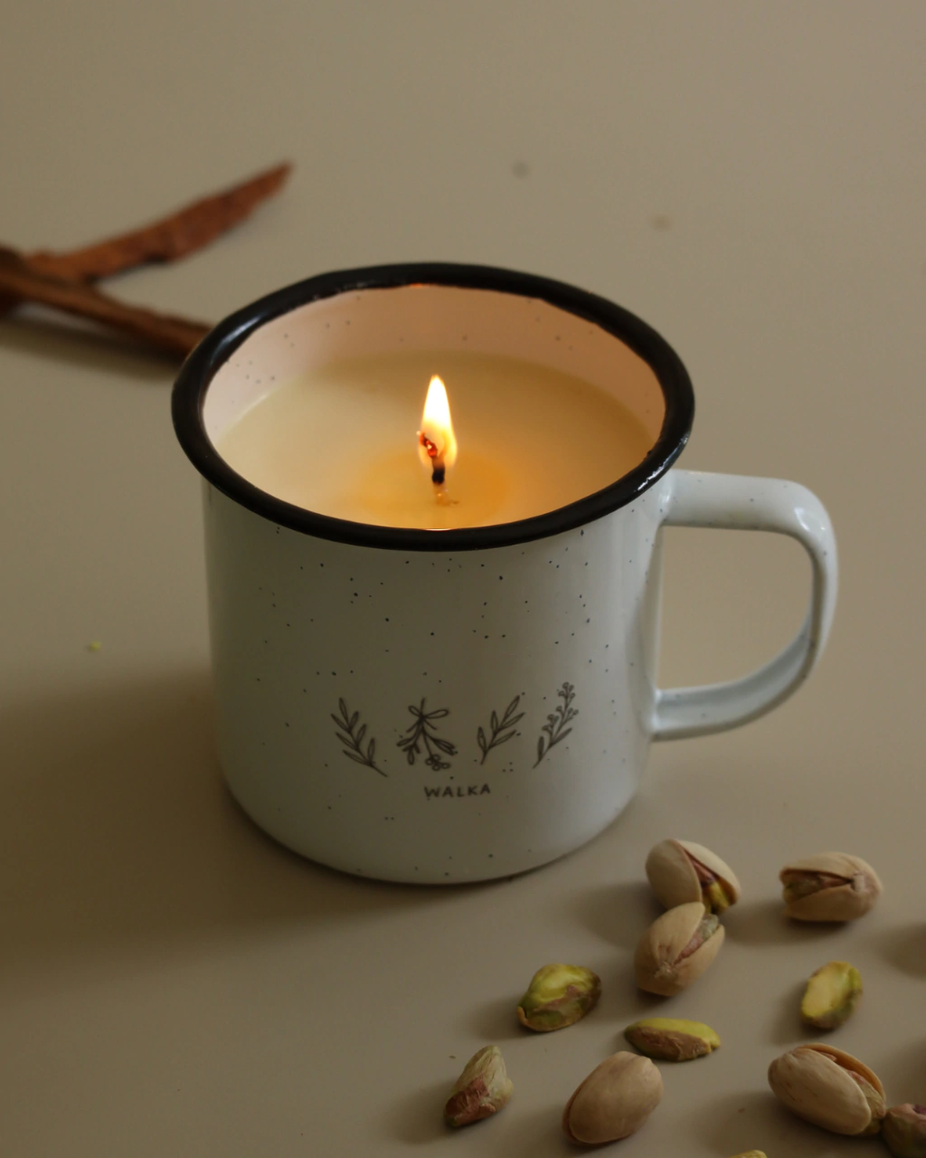 Nuestra Vela Mug combina lo simple de una taza enlozada con la calidez de un aroma nuevo que abraza.